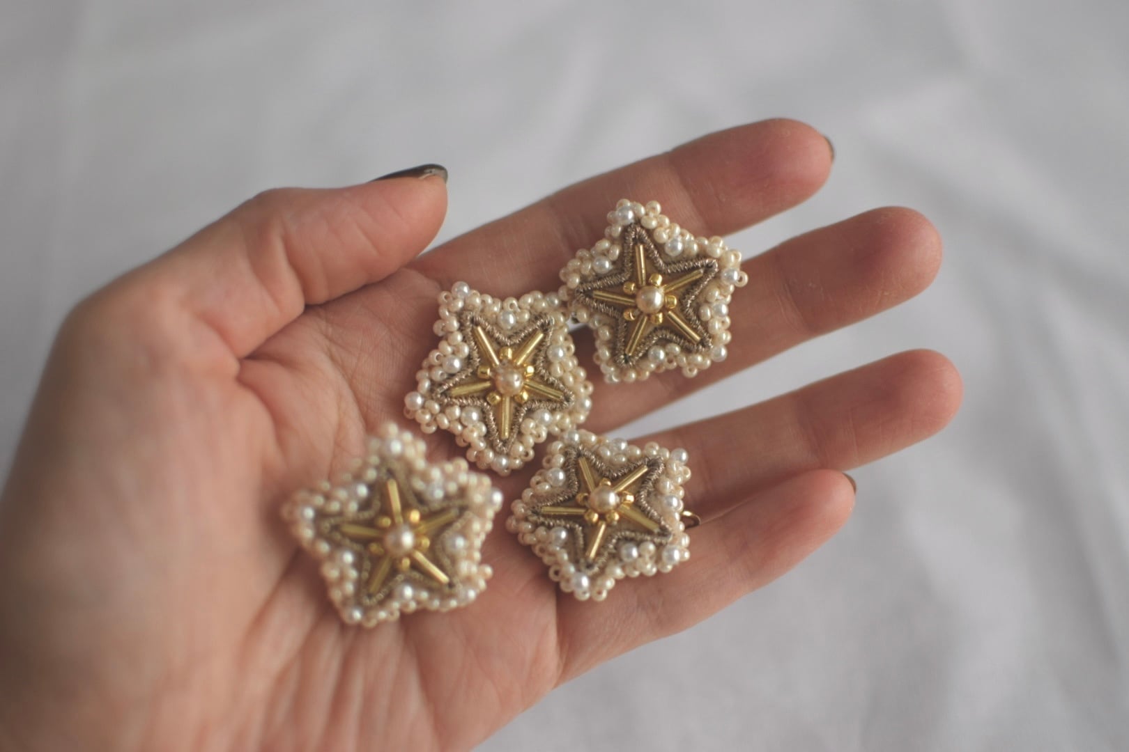embroidery/accessories/flower/wedding/ピアス/イヤリング/ビーズ/刺繍/春/夏/秋/冬/結婚式/ウエディング/プレゼント/ヴィンテージ/シンプル/パール/手刺繍/つぶつぶ/金属アレルギー対応/ステンレス金具/ビーズ刺繍/アンティーク/卒園式/卒業式/入学式