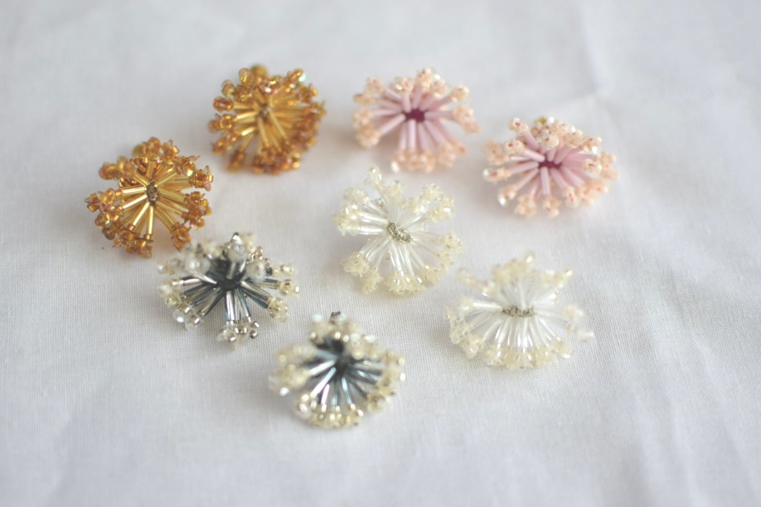 embroidery/accessories/flower/wedding/ピアス/イヤリング/ビーズ/刺繍/春/夏/秋/冬/結婚式/ウエディング/プレゼント/キラキラ/ヴィンテージ/おしゃれ/シンプル/パール/手刺繍/つぶつぶ/金属アレルギー対応/ステンレス金具/ビーズ刺繍/アンティーク/卒園式/卒業式/入学式