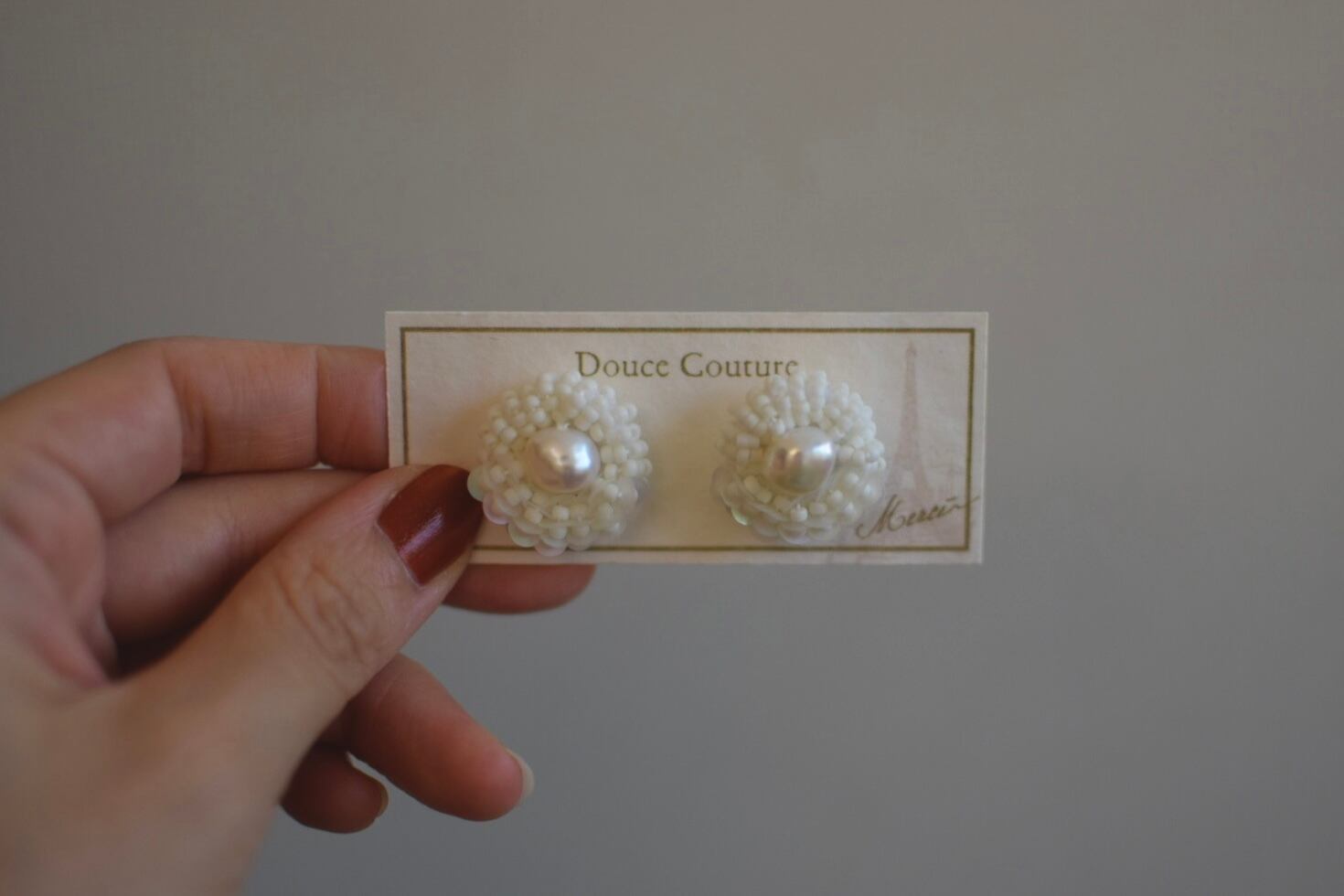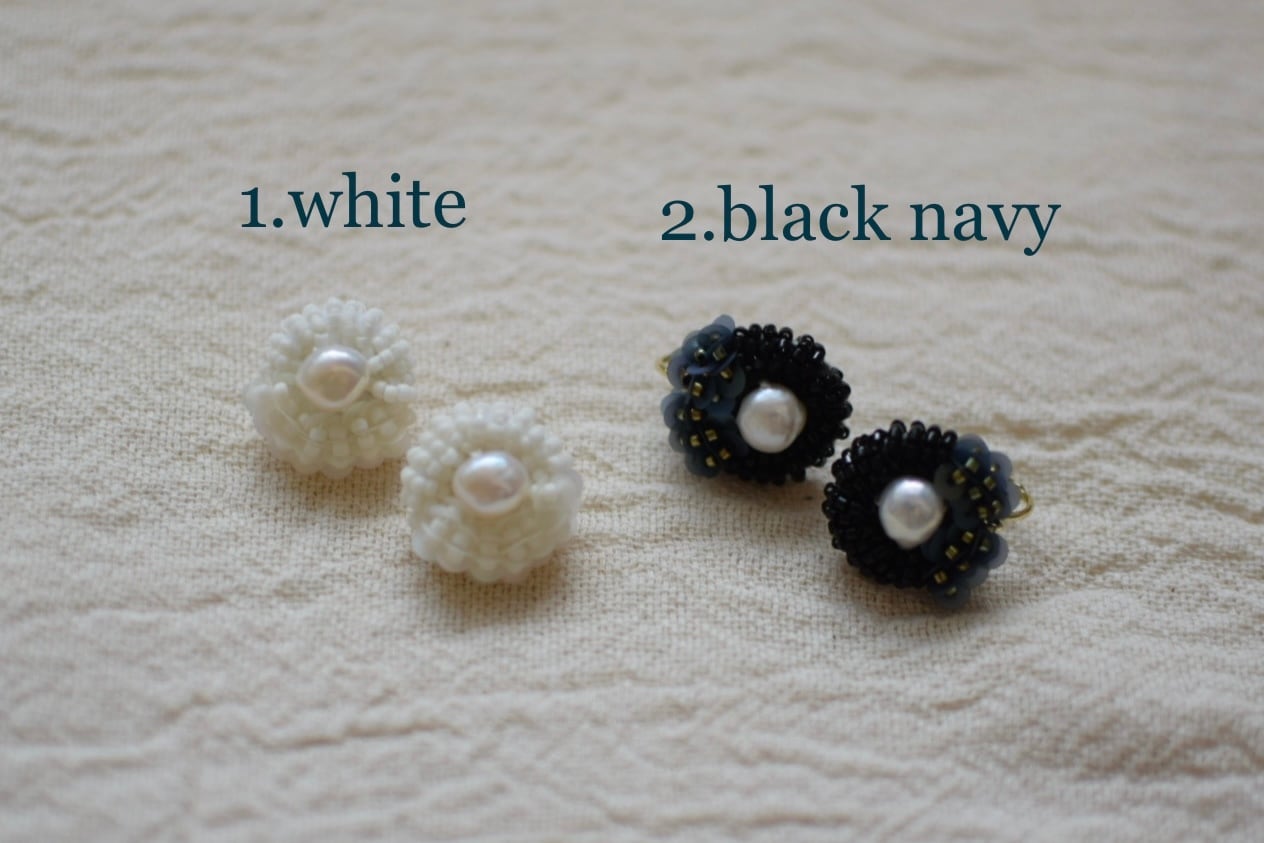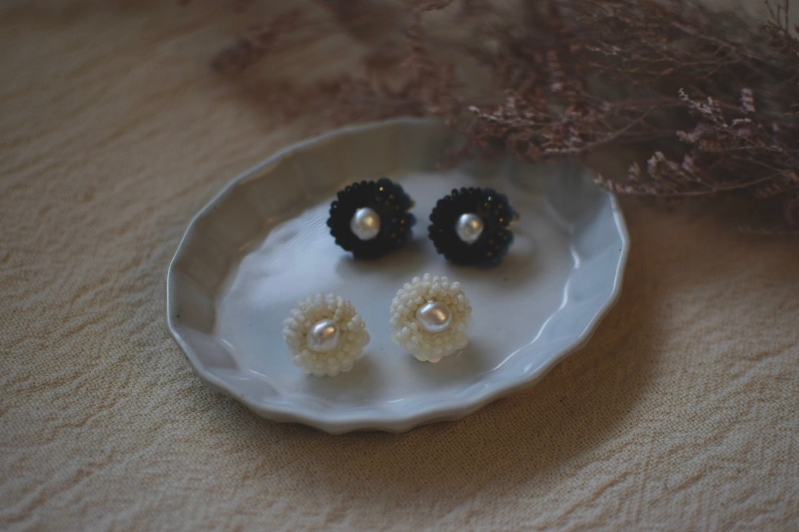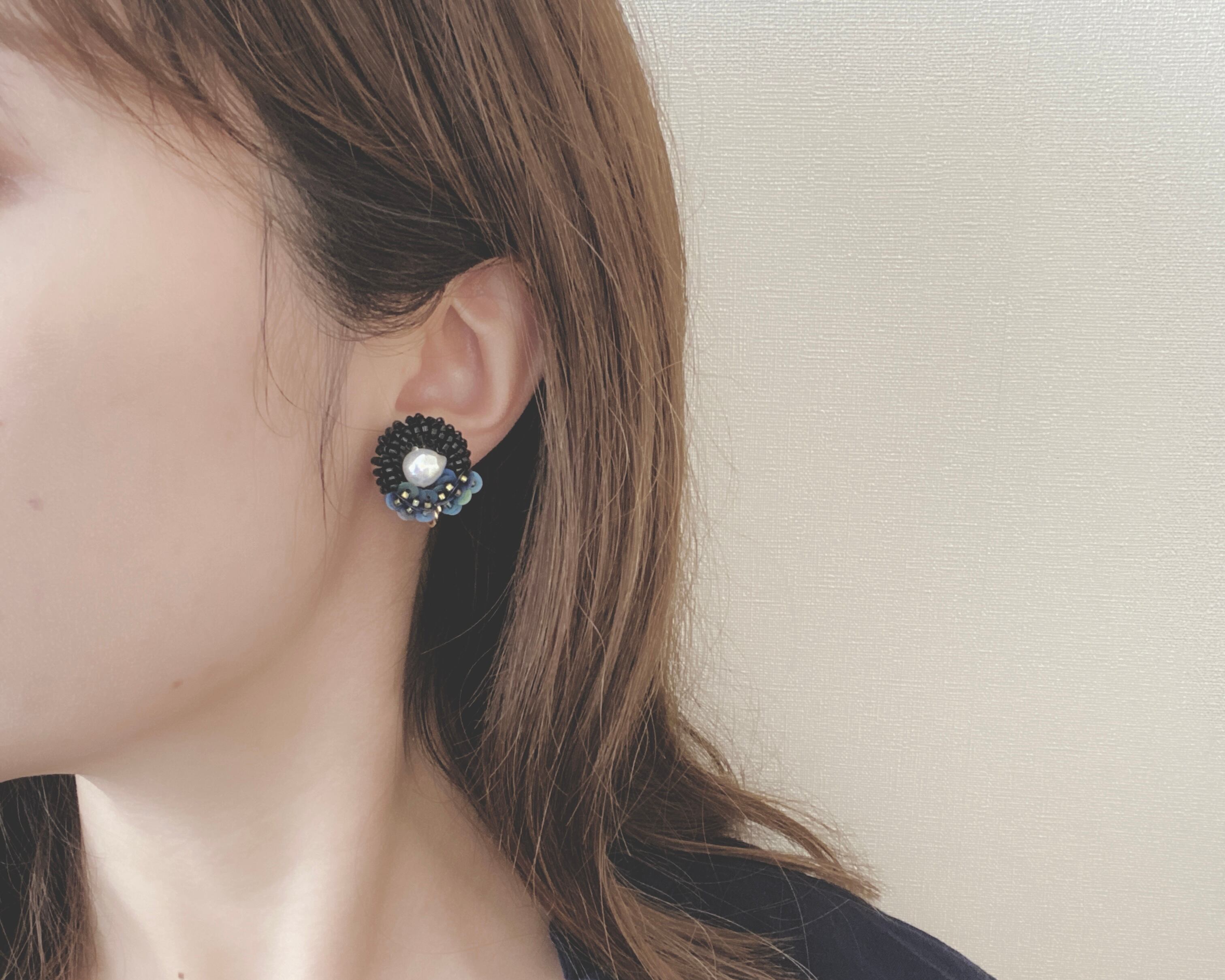 embroidery/accessories/flower/wedding/ピアス/イヤリング/ビーズ/刺繍/春/夏/秋/冬/結婚式/ウエディング/プレゼント/ヴィンテージ/シンプル/パール/手刺繍/つぶつぶ/金属アレルギー対応/ステンレス金具/ビーズ刺繍/アンティーク/卒園式/卒業式/入学式