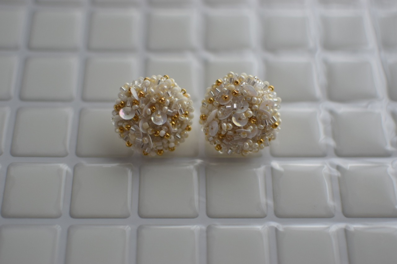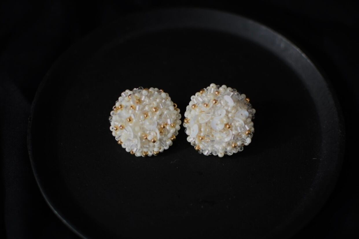 embroidery/accessories/flower/wedding/ピアス/イヤリング/ビーズ/刺繍/春/夏/秋/冬/結婚式/ウエディング/プレゼント/ヴィンテージ/シンプル/パール/手刺繍/つぶつぶ/金属アレルギー対応/ステンレス金具/ビーズ刺繍/アンティーク/卒園式/卒業式/入学式