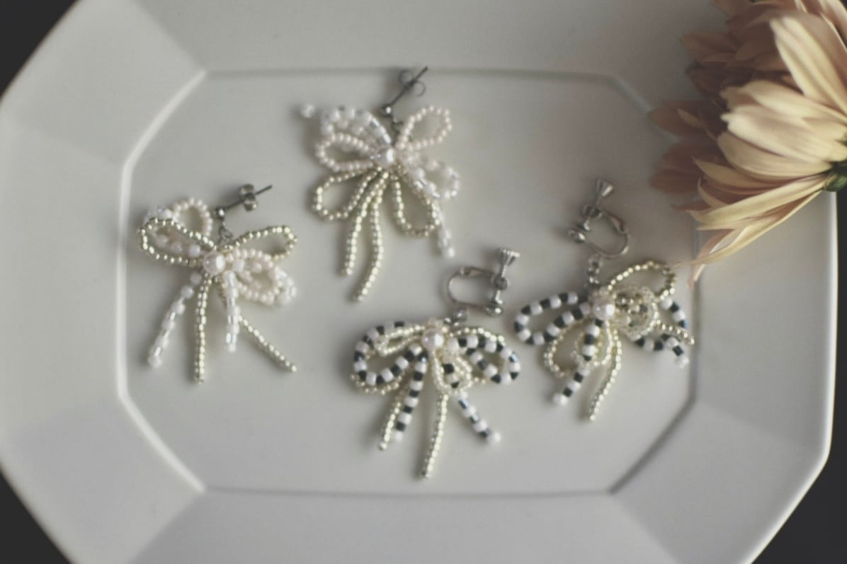 embroidery/accessories/flower/wedding/ピアス/イヤリング/ビーズ/刺繍/春/夏/秋/冬/結婚式/ウエディング/プレゼント/ヴィンテージ/シンプル/パール/手刺繍/つぶつぶ/金属アレルギー対応/ステンレス金具/ビーズ刺繍/アンティーク/卒園式/卒業式/入学式